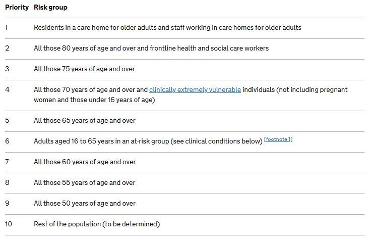 - Groups with considerably higher mortalities than the rest of the population (the elderly and the clinically vulnerable)